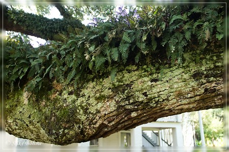 Besonders haben mich die Live Oaks fasziniert. Hier in der Gegend hängt kein Spanish Moss drauf, sondern es wächst Farn auf den riesigen Ästen. Diese sehen dadurch ganz flauschig aus. |