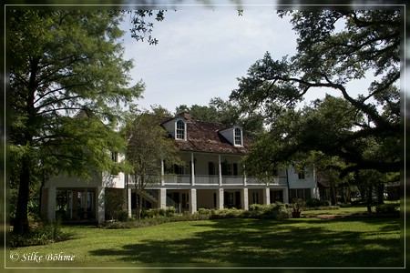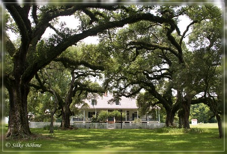 Um 9 Uhr fuhr ich los, heute würde es wieder sehr „plantagig“ werden Zuerst kam Melrose Plantation dran. Als ich auf den Parkplatz fuhr, war das Tor zum Plantagengelände zu und mit einem großen Closed-Schild verziert. Darf jetzt nicht wahr sein, oder... Ich ging nach vorne, wo ein anderes Schild hing und – puhhhh – sie öffnen um 10 Uhr, jetzt war es erst halb zehn. Ich stellte James im Schatten einer großen Live Oak ab, rauchte eine Zigarette und hing meinen Gedanken nach.