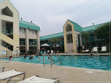 Und direkt neben dem Hotel ist ein Hooters, wo ich dann zum Abendessen hin ging. Meine Shrimps Tacos und der Cesar Side Salad waren sehr gut. Abends saß ich dann noch eine ganze Weile auf der Terrasse und genoss es, wieder in der „Zivilisation“ bzw. in einem schönen Hotel zu sein  |