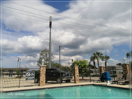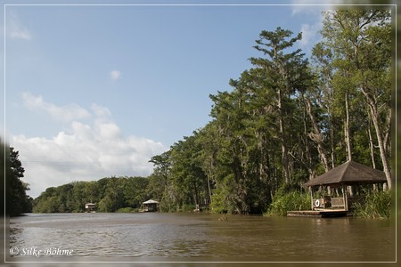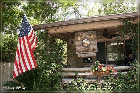 Und so war es dann auch. Schon bei der nächsten Zigarette war die Wolkenwand nur noch hellgrau und als ich um halb neun bei Dr. Wagner's Honey Island Swamp Tour ankam war es nur noch „partly cloudy“.