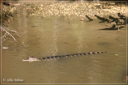 Ab und zu sah man einen kleinen Alligator, auch hier wurde ab und zu ein Marshmallow geworfen, aber nur wenige. Überhaupt war der Guide sehr angenehm, er erzählte zwar einiges über Flora und Fauna, aber er gab uns auch die Möglichkeit, diese herrliche Tour in Stille zu genießen  |