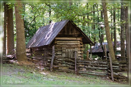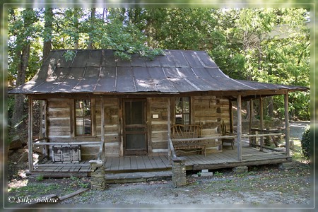 Dann fuhr ich die 2 Meilen bis zur Lefler Grist Mill. 2017 war ich bei Dauerregen dort, heute bei schönstem Sonnenschein. Besser zum Fotografieren war es aber nicht, denn die Mill ist eigentlich komplett im Wald gelegen und durch die Bäume ist alles sehr schattig und dadurch dunkel. Kaum war ich dort, hatte ich auch schon zwei Stiche kassiert...  Toll, das "Off" lag noch im Motel, ich hatte es noch nicht in das neue Auto geräumt. |