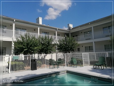 Und es ist super praktisch gelegen, man kann zu Fuß zu den Innenstadt Restaurants laufen Aber trotzdem... es machte halt einen älteren Eindruck (was ja auch stimmt) und der Pool sah nicht sehr gepflegt aus. Klar, da stehen Bäume drumherum, da fliegen Blätter rein. Aber irgendwie war ich heute von allem etwas „ernüchtert“. Mein Zimmer lag im oberen Stock und wenn ich vor die Tür trat, hatte ich eine nette Aussicht auf den Pool.