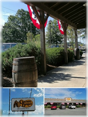 Um 9 war ich im Cracker Barrel und bestellte mir wieder den obligatorisches „Grandma's Sampler“. Die Pancakes sind einfach so unheimlich gut, ebenso die Hashbrown Casserole. Dann stöberte ich noch ein wenig im „Gemischtwarenladen“ und rauchte anschließend auf der für Cracker Barrel so typischen Veranda.